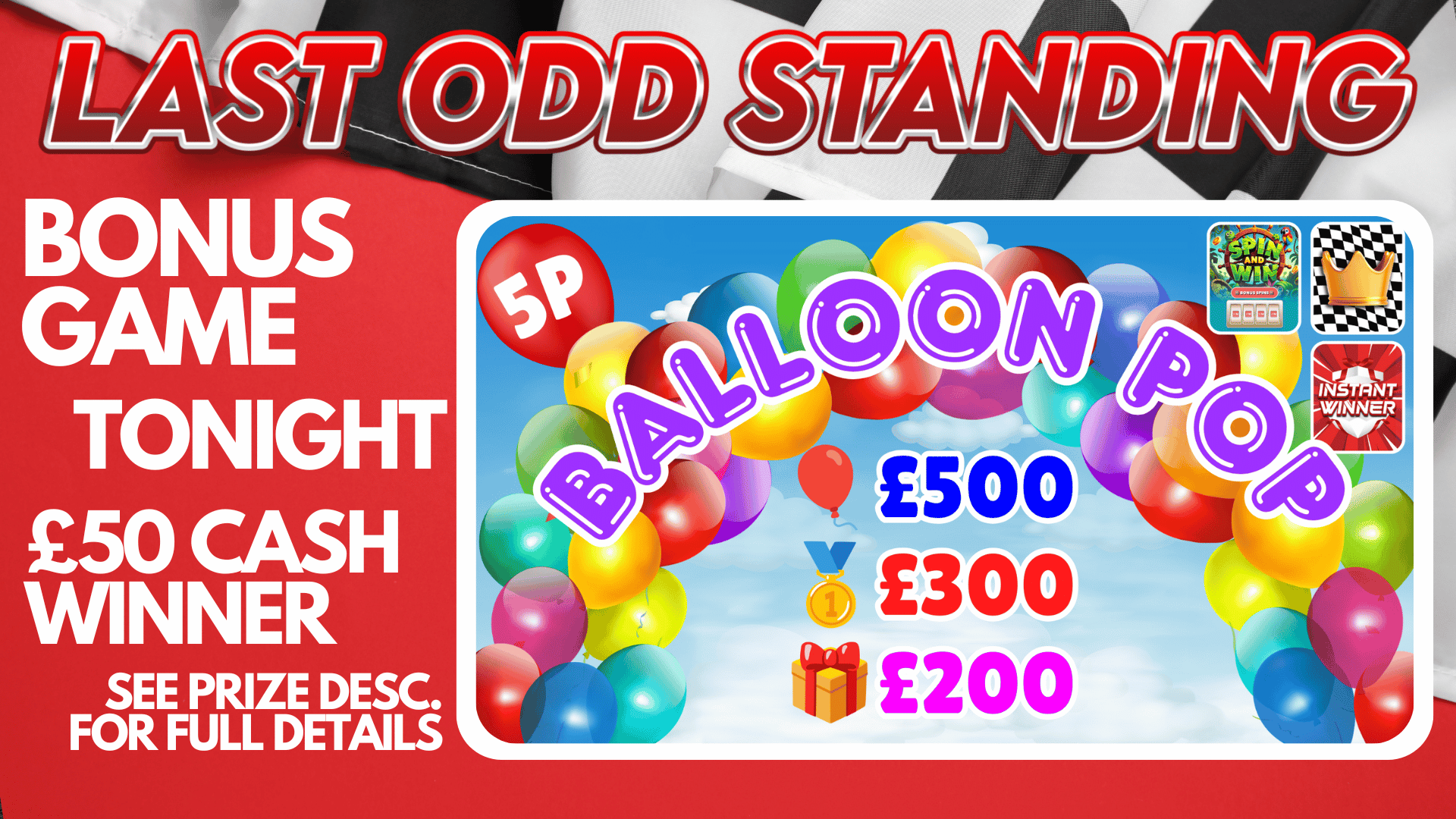 🎈Balloon Pop - WITH ACTUAL CASH BALLOONS | 🏁 15 Cash Leaderboard Prizes | 🎈Cash Instant Wins | 🎰 £25 Cash Bonus Spins info info
