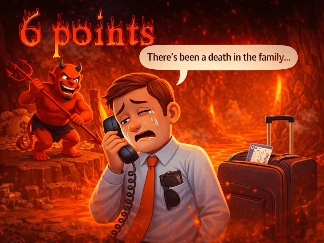 Faked a family death, to get time off (6 points)